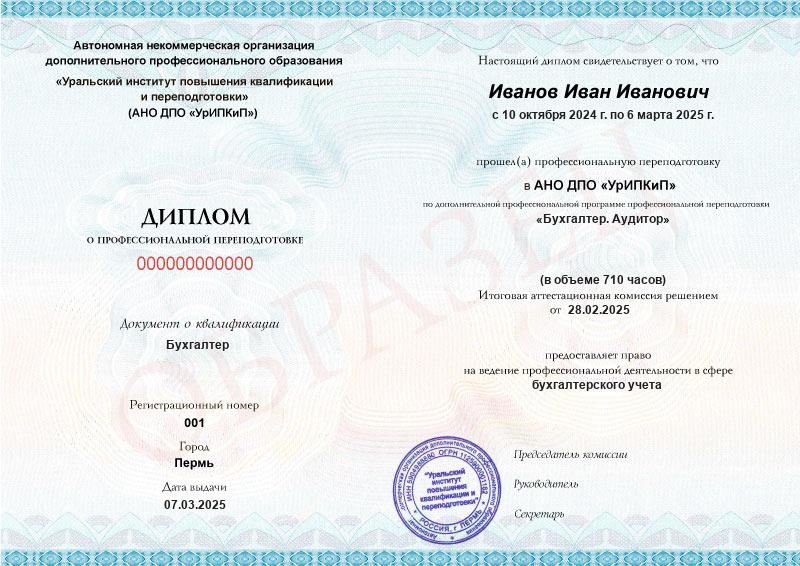 На курсе вы получите диплом о профессиональной переподготовке с присвоением сразу двух квалификаций: бухгалтер и аудитор.
