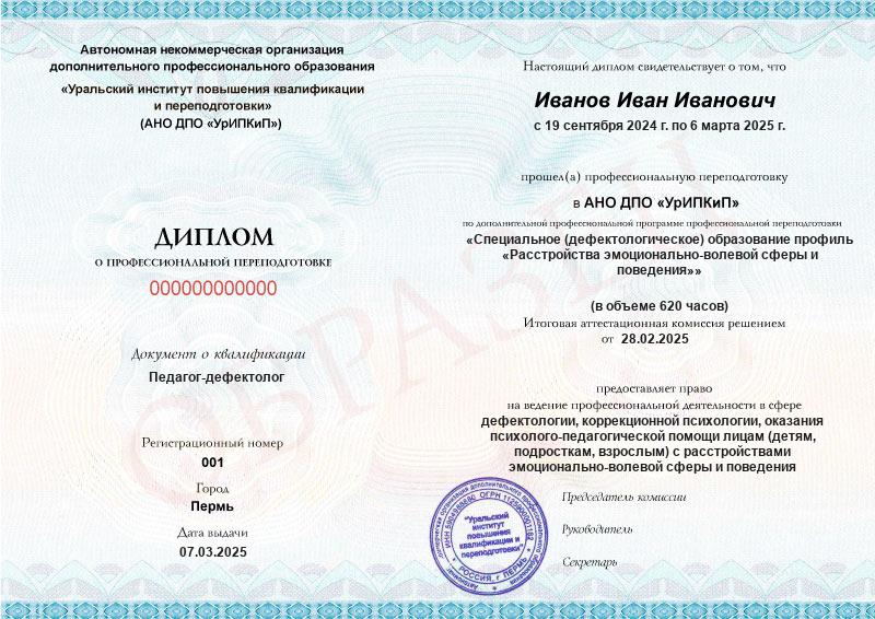 Специальное (дефектологическое) образование профиль «Расстройства эмоционально-волевой сферы и поведения» (620ч)