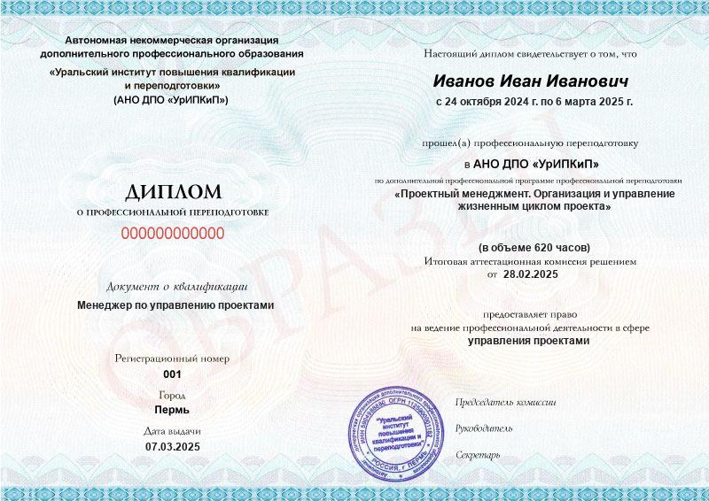 Да, дипломы и удостоверения оформляются в соответствии с действующим законодательством РФ. Документы печатаются на специальных бланках, заверяются печатью АНО ДПО «УрИПКиП».