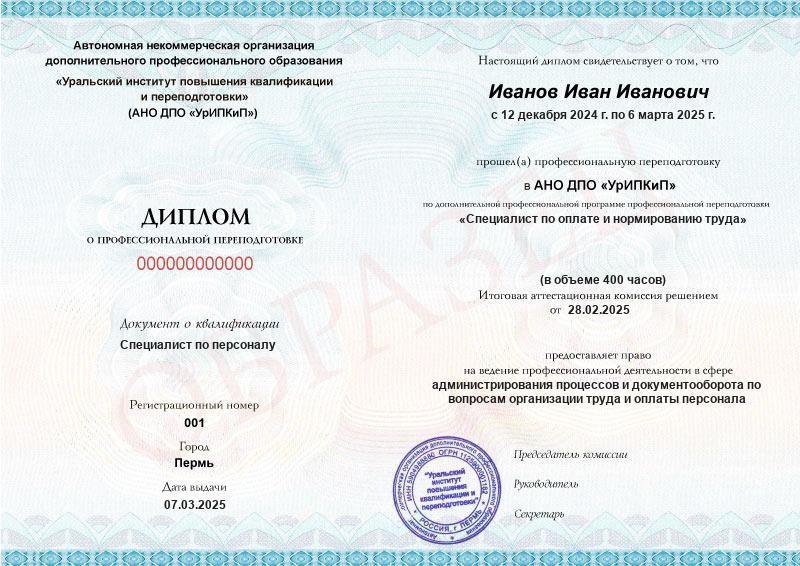 - Образец диплома о профессиональной переподготовке.