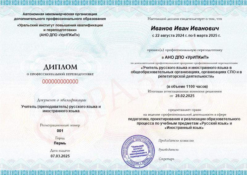 • 2 квалификации: Учитель (преподаватель) русского языка и иностранного языка + Репетитор